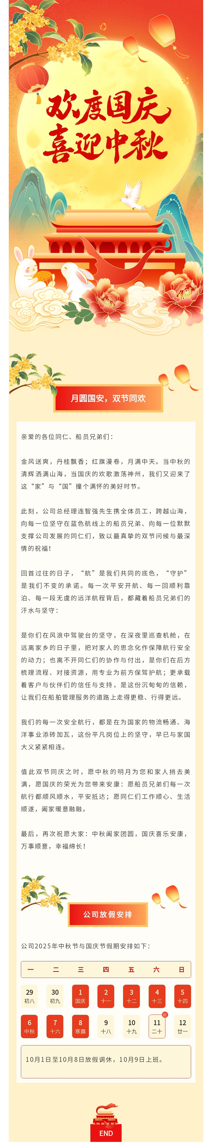 月圓國(guó)安,雙節(jié)同歡